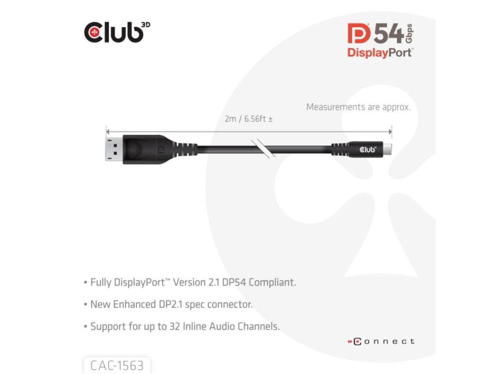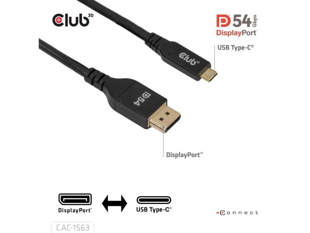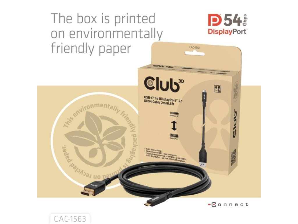 Club3D Kabel USB-C na DisplayPort 2.1 DP54 Bi-Directional, 8K120Hz, 4K480Hz, 2m CAC-1563 Club 3D