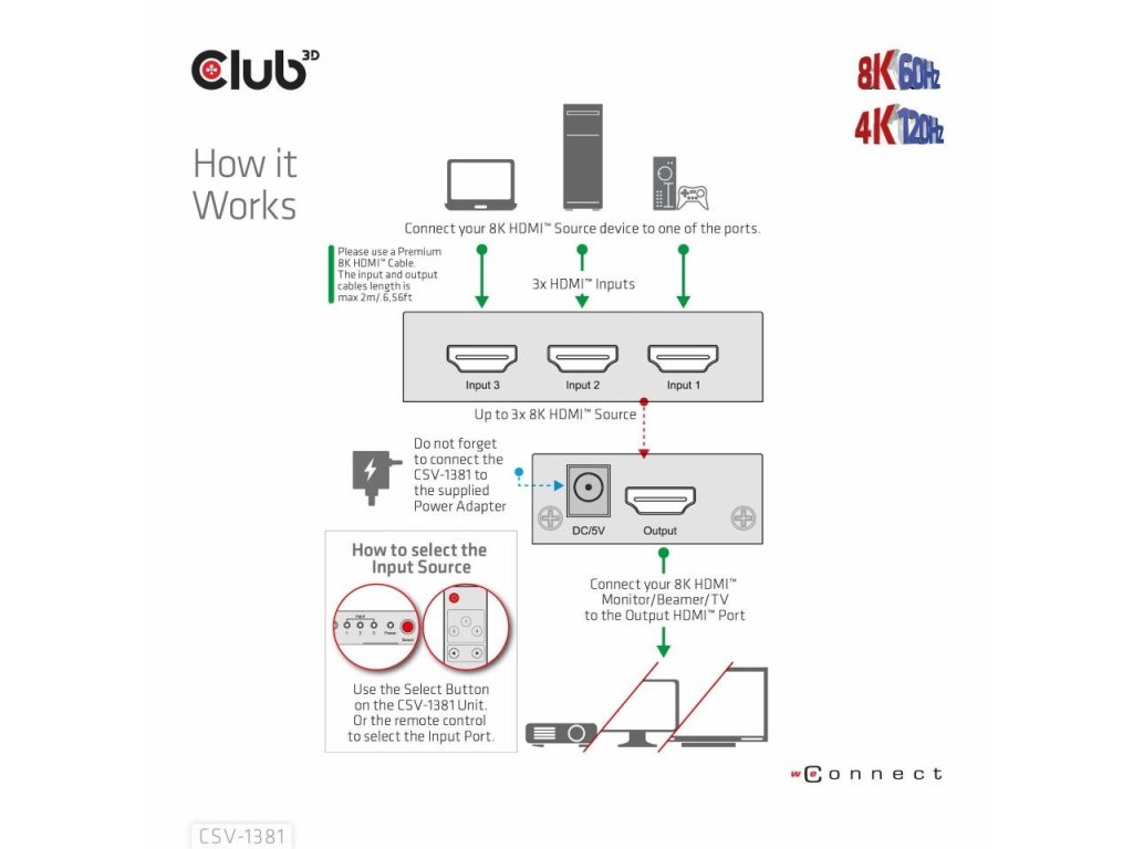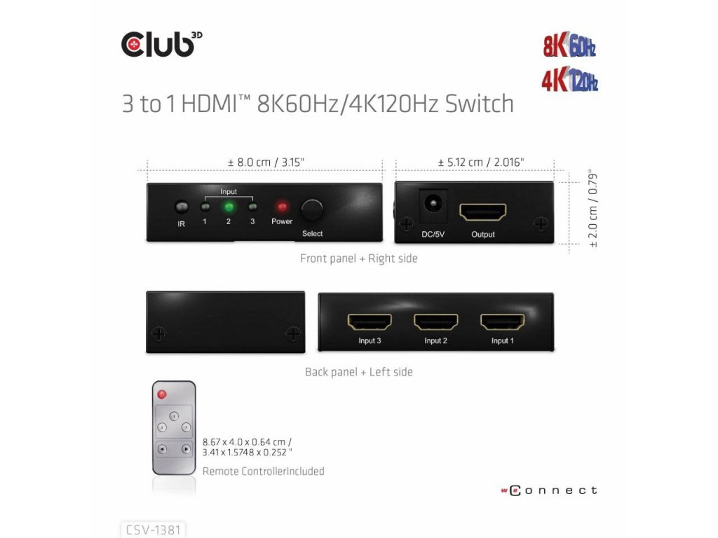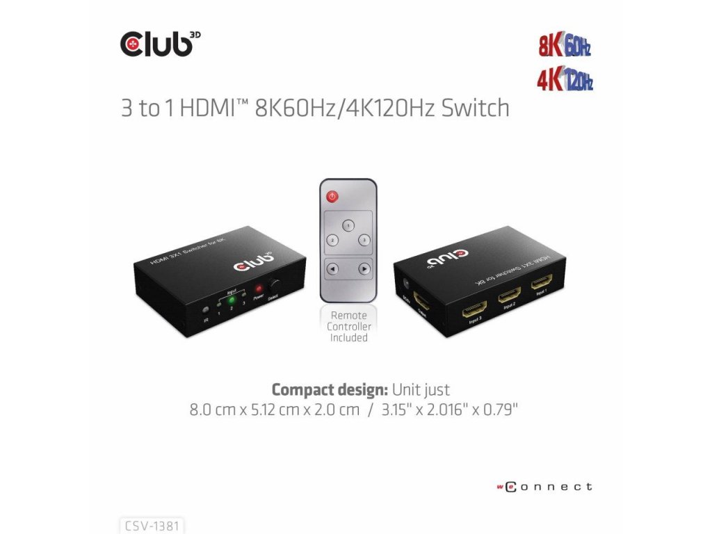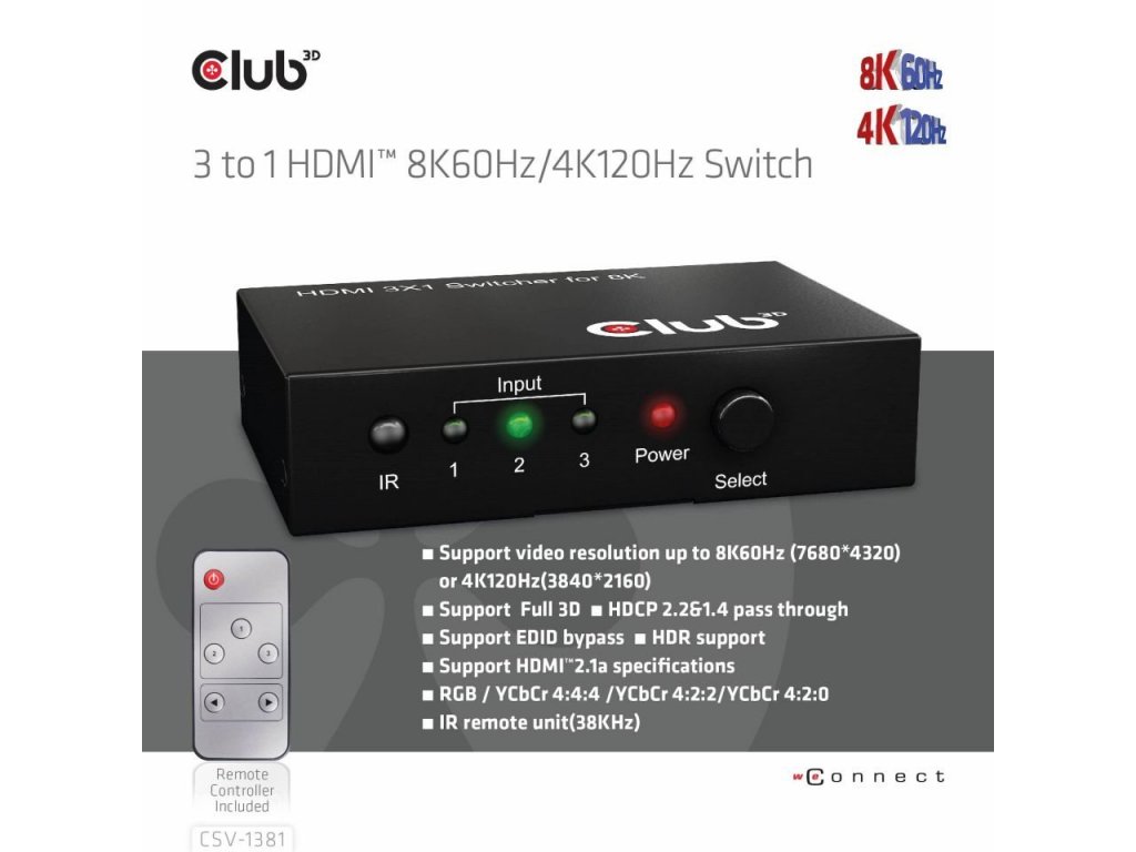 Club3D Switch 1:3 HDMI 8K60Hz/4K120Hz, 3 porty CSV-1381 Club 3D