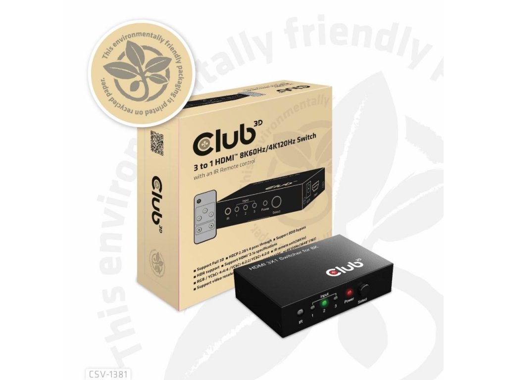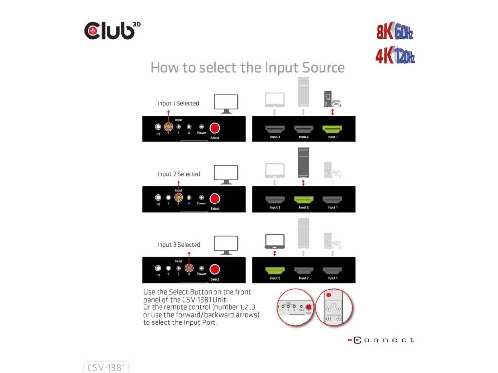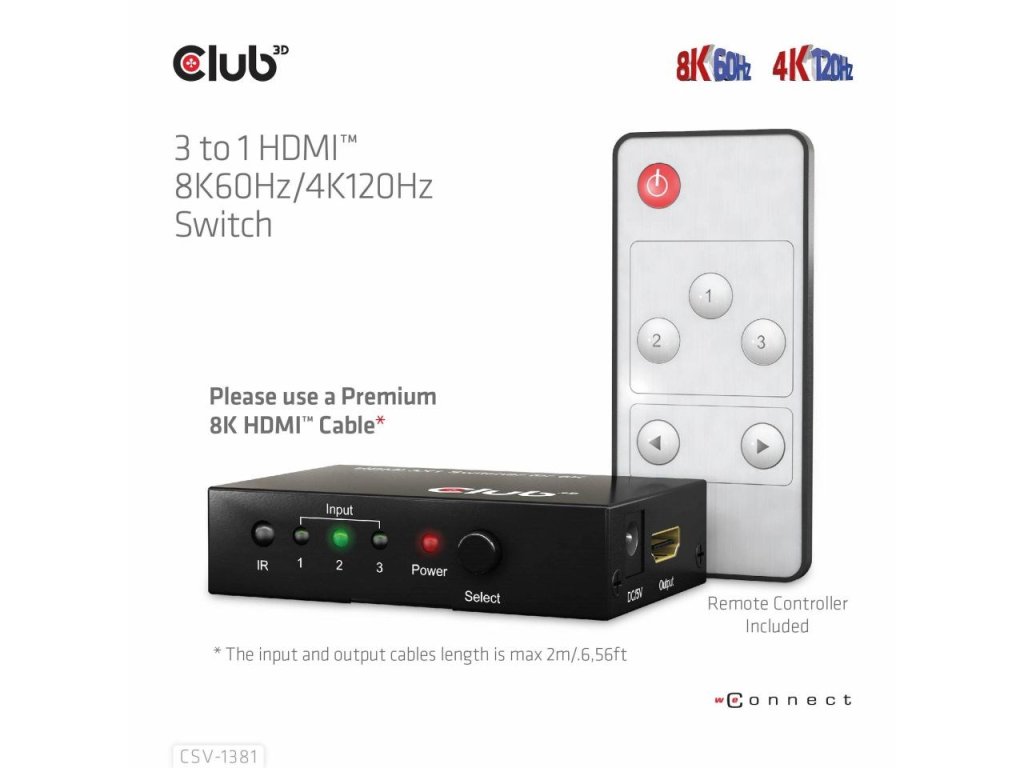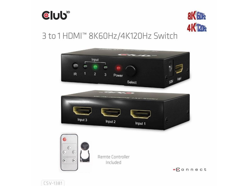 Club3D Switch 1:3 HDMI 8K60Hz/4K120Hz, 3 porty CSV-1381 Club 3D