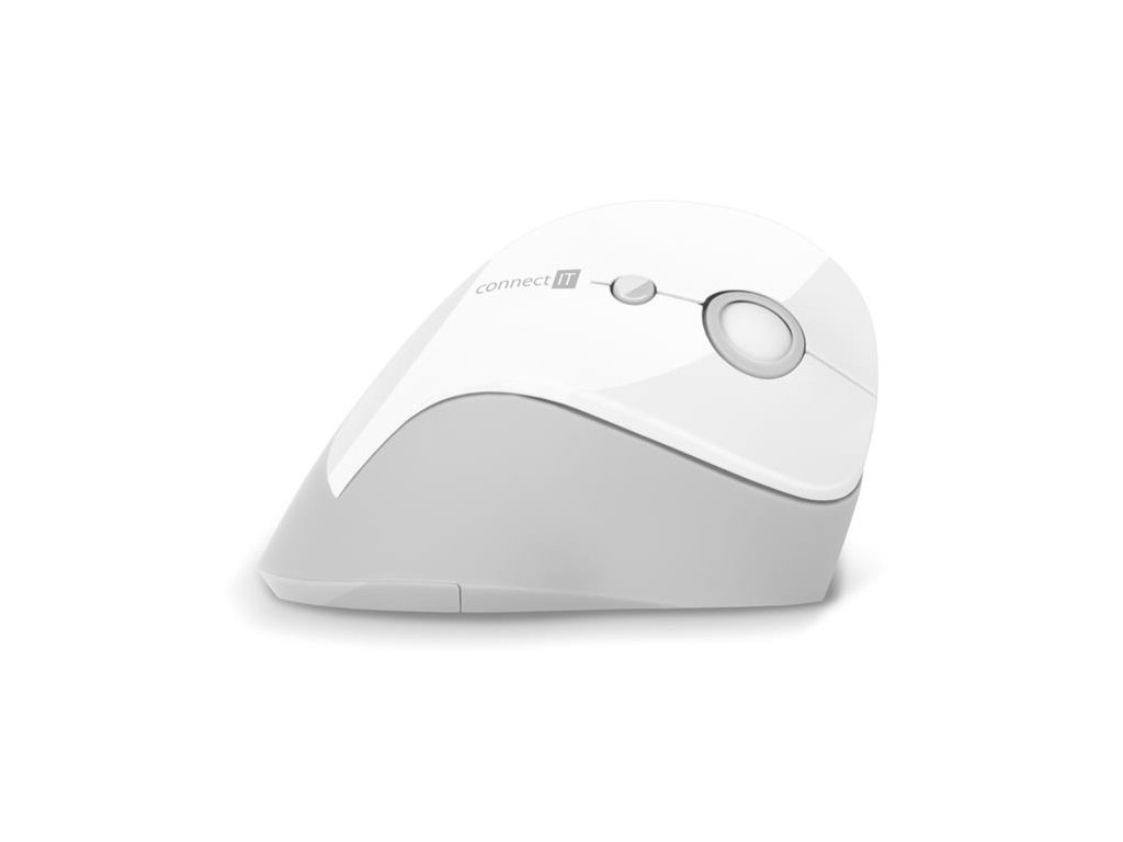 CONNECT IT FOR HEALTH ergonomická vertikální myš, (+ 1x AA baterie zdarma), bezdrátová, BÍLÁ