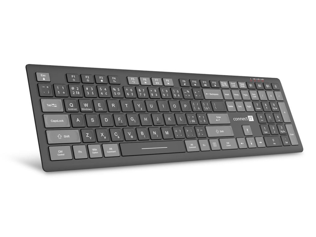 CONNECT IT MultiDevice bezdrátová klávesnice,tichá,nízk. profil, Quatro SmartSwitch 4 zařízení, CZ + SK layout, ŠEDÁ CKB-5060-CS Connect IT