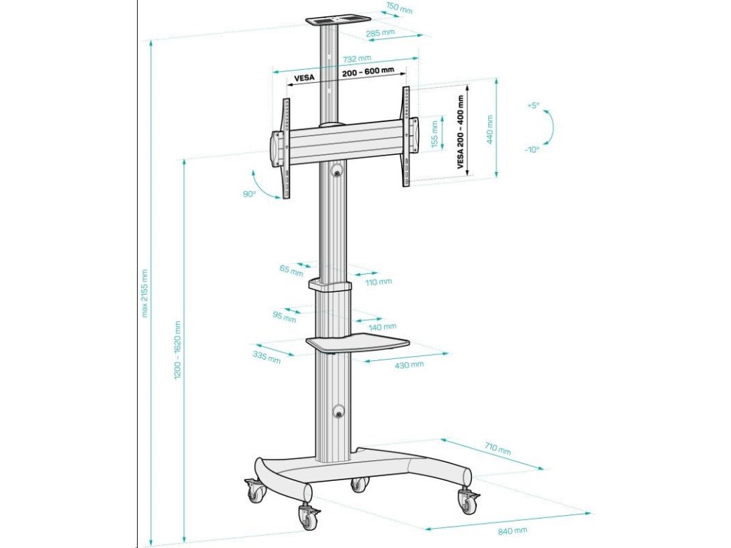 CONNECT IT Wheelie II mobilný stojan a držiak na jednu obrazovku 37" - 70", 30 rokov záruka, strieborná CMH-9300-SL Connect IT