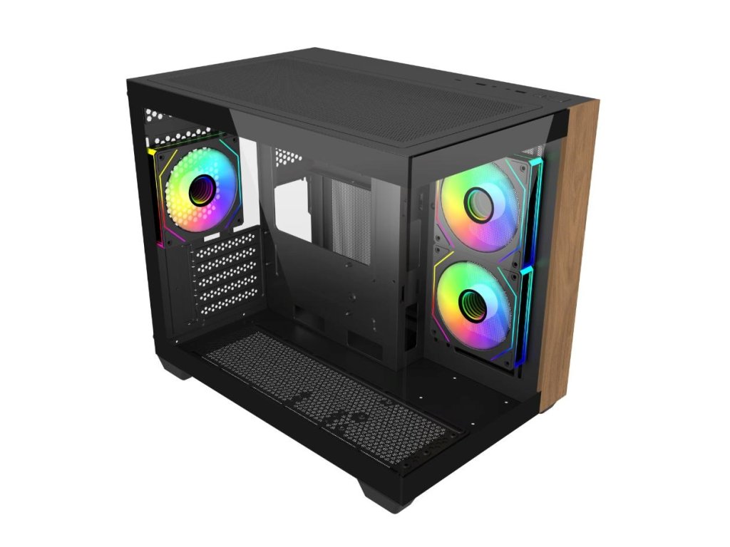 Cooler Master case Elite 481 Wood, mATX, Průhledná bočnice, 3x 120mm ARGB Fan, Černá E481-KHNN-S00 CoolerMaster
