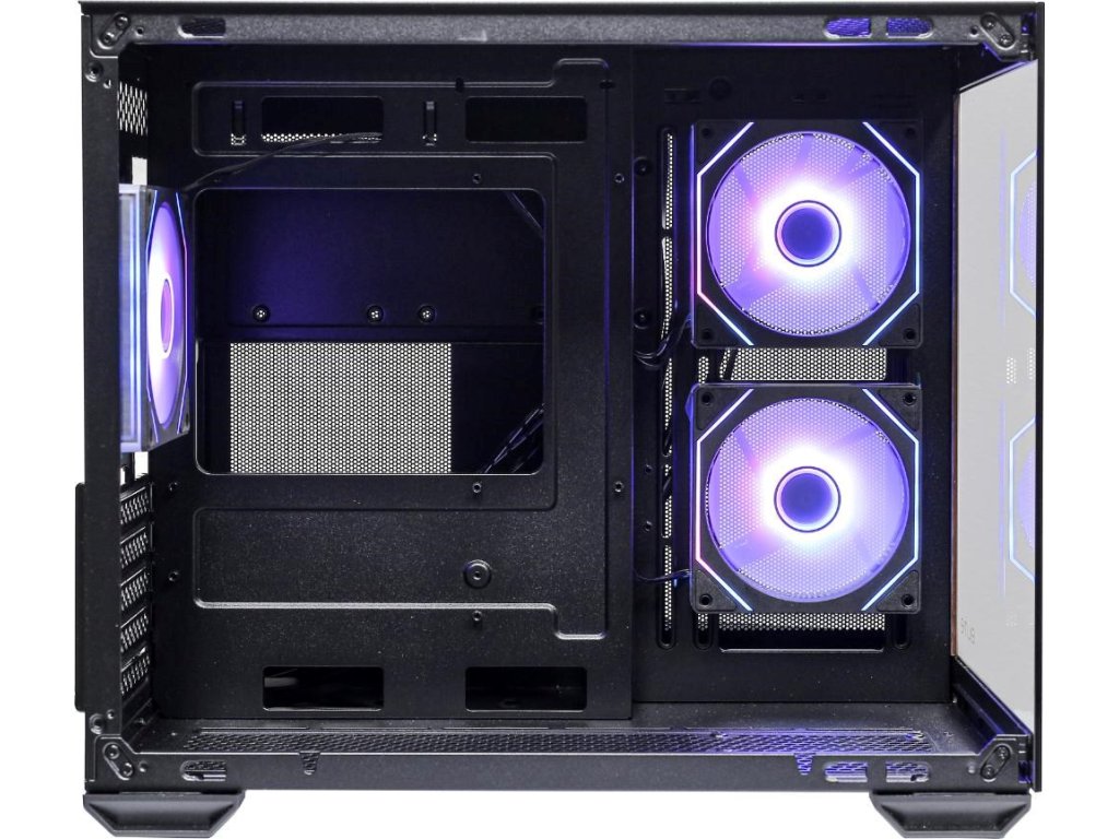 Prevedenie skrine:Midi Tower; Farba skrine:Čierna; Počet pozícií 3.5" (HDD):1; Počet interných pozícií 2.5":2; Vybavenie PC skrinky:Predný Audio panel, Predný USB panel, Priehľadná bočnice