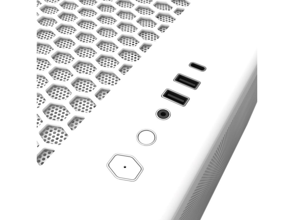 Prevedenie skrine:Midi Tower; Farba skrine:Biela; Počet pozícií 3.5" (HDD):2; Počet interných pozícií 2.5":2; Vybavenie PC skrinky:Predný Audio panel, Predný USB panel, Priehľadná bočnice