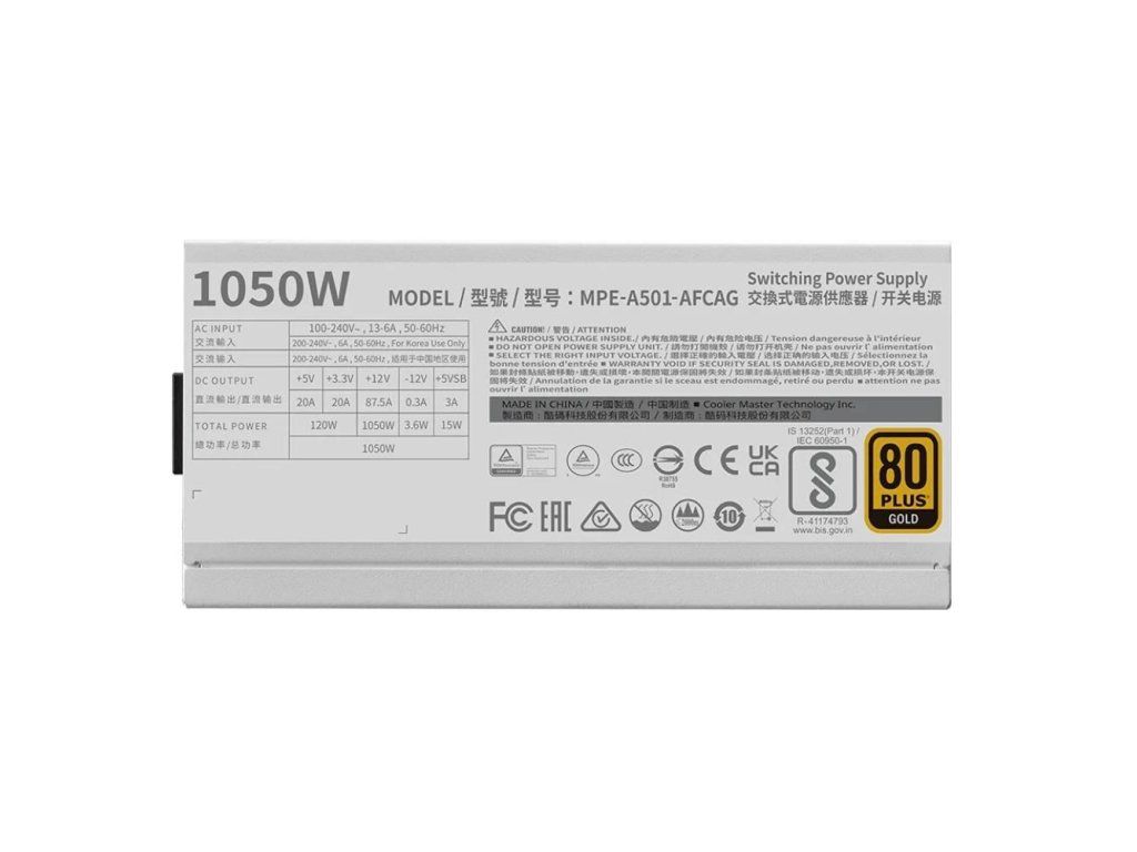 Cooler Master zdroj 1050W MWE Gold, 140mm, Plně modulární, 80+ Gold, ATX 3.1, bílá MPE-A501-AFCAG-3EGEU CoolerMaster