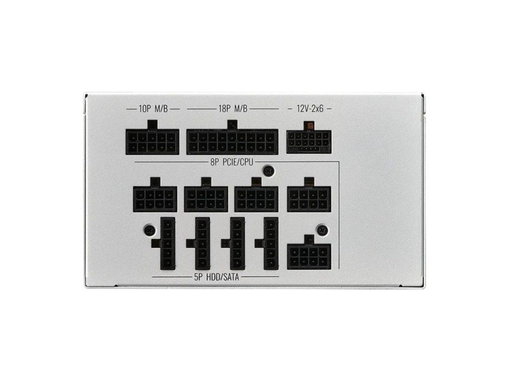 Formát zdroja:ATX; Konektory:8pin CPU 1x, PCIe 6-pin, PCIe 8-pin, PCIe 16-pin Gen5, SATA 15-pin, Molex; Konektory pre základnú dosku:ATX 20-pin, ATX 24-pin, EPS 8-pin; Vlastnosti zdroja:Modulárna kabeláž