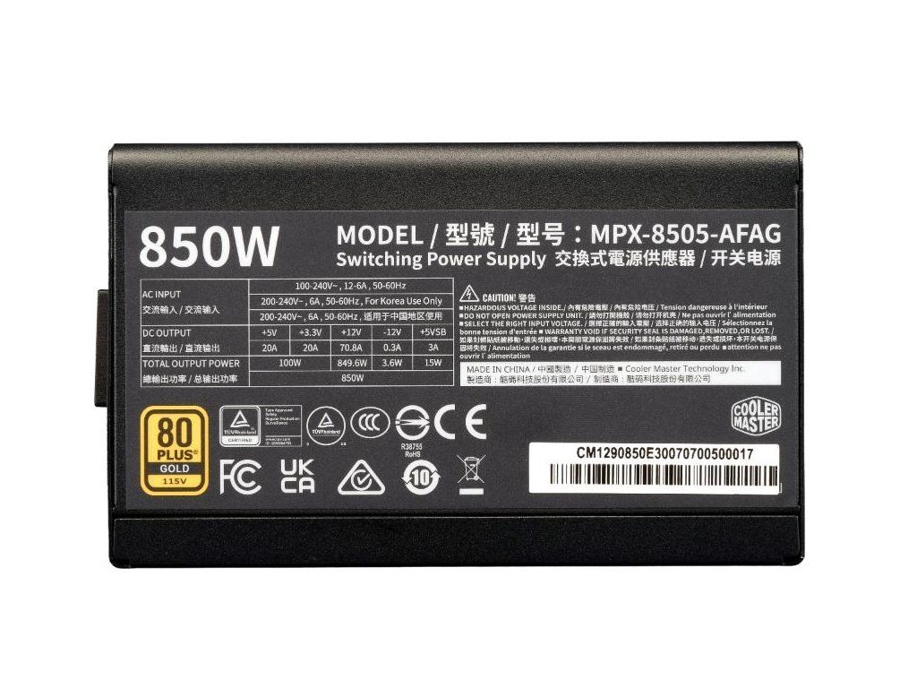 Cooler Master zdroj ELITE Gold 850W FM, 120mm, Plně modulární, 80 Plus Gold, ATX 3.1 MPX-8505-AFAG-BEU CoolerMaster
