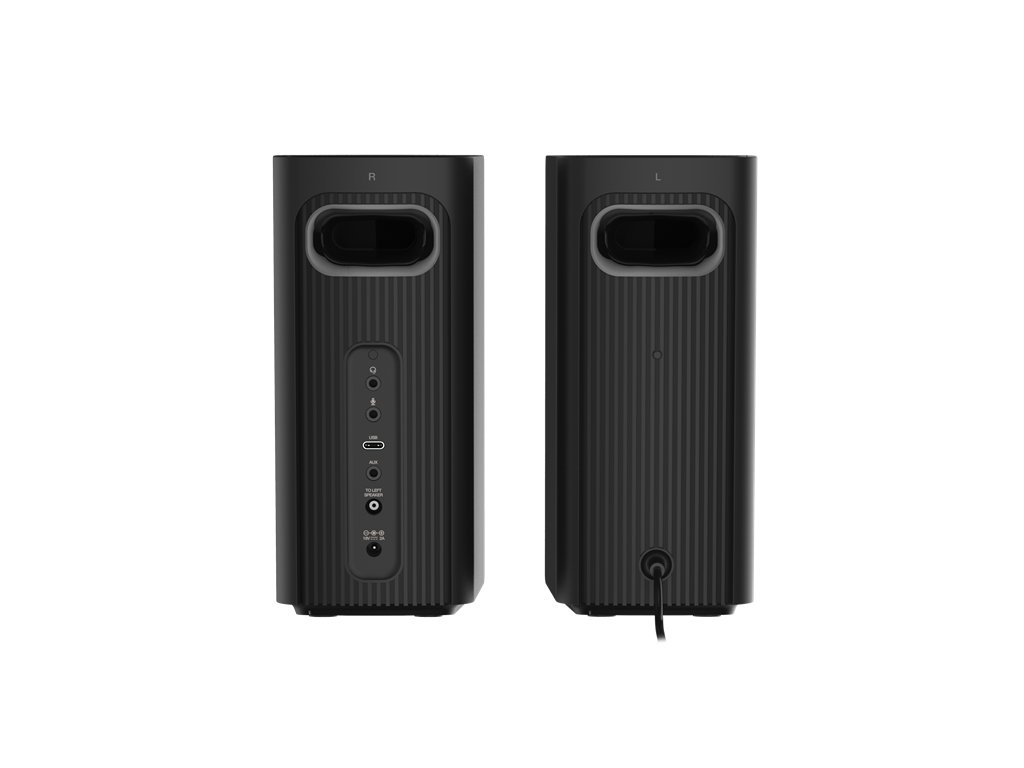Reproduktorový systém Creative T60 především nabízí celou škálu možností připojení. Kromě zvuku USB-C pro herní konzole obsahuje integrované konektory pro připojení sluchátek a mikrofon, když se potřebujete zúčastnit online pracovního hovoru. Dále je tu praktické a snadno přístupné tlačítko pro přepínání reproduktorů a sluchátek. Nejvyšší čas posunout úroveň výchozího počítačového zvuku někam dál.