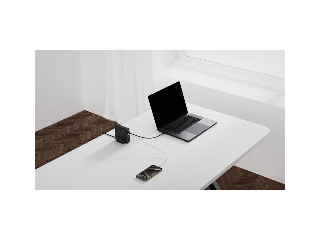 V balení navyše nájdete sieťový kábel s dĺžkou 1,5 m, stojan pre pohodlné umiestnenie nabíjačky na pracovnom stole alebo v kancelárii a 240 W USB-C na USB-C kábel s dĺžkou 1 m. Vďaka malým rozmerom sa jedná o kompaktné a prenosné riešenie , ktoré sa zmestí do každej tašky či batohu.