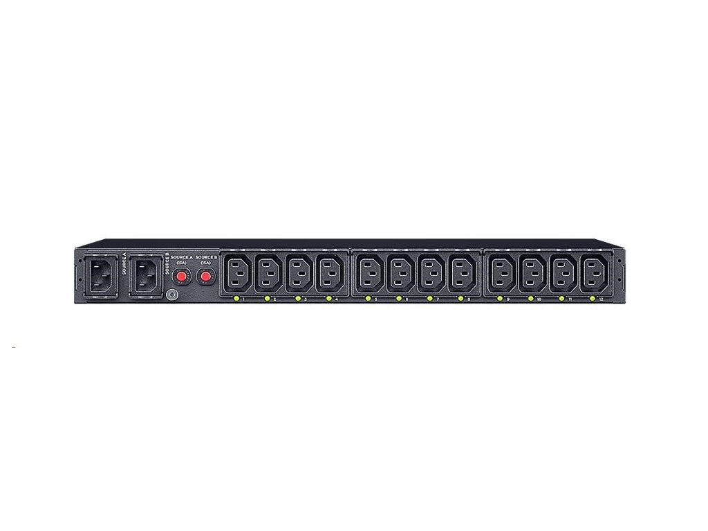 Typ zariadenia:ATS; Fáza (Vstup/Výstup):1:1; Funkcie:Spínané výstupy; Prevedenie:Rackový; Výška v racku:1U; Vstupný prúd:12A; Počet výstupov:12; Porty, Konektivita:LAN; Typ zásuviek:IEC