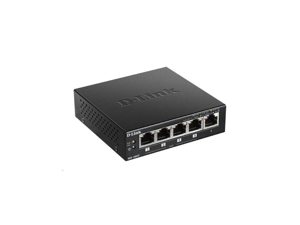 D-Link DGS-1005P 5-portový gigabitový stolový prepínač PoE+, 4 porty PoE+, rozpočet PoE 60 W DGS-1005P-E