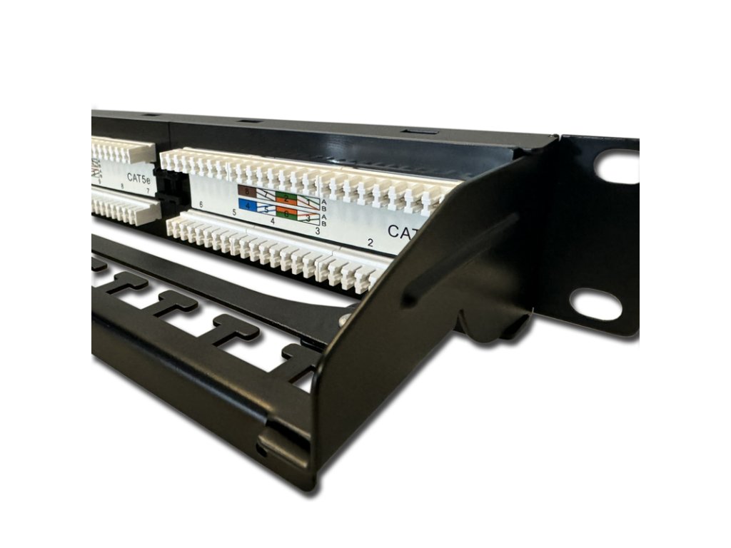 DATACOM Patch Panel 19'' UTP 24 port CAT5E DUAL 1U BK Tento patch panel DATACOM je ideálním řešením pro organizaci a správu kabeláže v datových sítích. Panel je určen pro montáž do 19'' racku a nabízí 24 portů kategorie 5E (CAT5E), zajišťujících spolehlivý přenos dat s vysokou propustností. Robustní a kompaktní konstrukce s výškou 1U šetří místo ve vašem racku. * 24 portů CAT5E pro rychlý a stabilní přenos dat * Kompatibilní s protokoly 10BASE-T, 100BASE-TX a 1000BASE-T * UTP (nestíněné provedení) * Zářezové pole typu DUAL (LSA i 110) na 4 polích po 6 portech (4x6p) * Montáž do 19'' racku, výška 1U * Vyvazovací lišta (VL) součástí pro snadnější organizaci kabelů * Barva: Černá (BK) Patch panel je vhodný pro firemní sítě, datová centra nebo menší strukturované kabeláže a nabízí jednoduchou instalaci a spolehlivý výkon. Technické specifikace * Konektory: 24× RJ45 (8P8C) * Kategorie: CAT5E * Rychlost přenosu: až 1 Gbps * Šířka pásma: 100 MHz * Provedení: UTP (bez stínění) * Montáž: 19'' rack, 1U * Barva: Černá (BK) * Vyvazovací lišta: Ano (VL) * Rozměry: 482,6 mm × 44,45 mm × 35 mm (hloubka bez lišty) / 91 mm (s lištou) * Hmotnost: 0,782 kg (výrobek), 0,904 kg (balení) Odkaz na web výrobce: https://www.krt.cz/datacom-patch-panel-19-utp-24-port-cat5e-dual-1u-bk-4x6p-vl_d2509.html