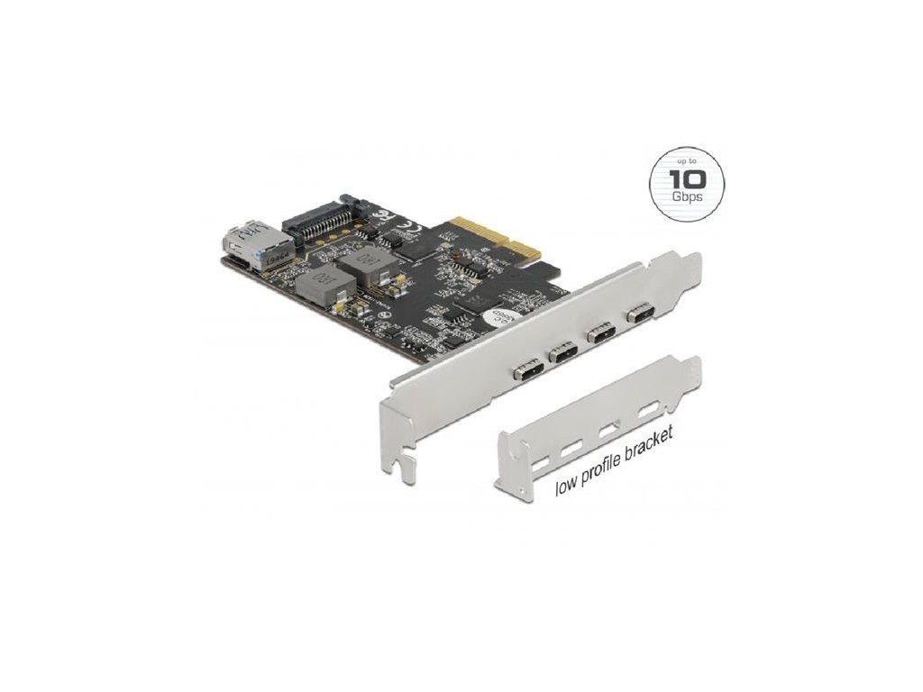 Delock PCI Express x4 Karta na 4 x USB Type-C™ + 1 x USB Typ-A - SuperSpeed USB 10 Gbps - Low Profile 90059 DeLock