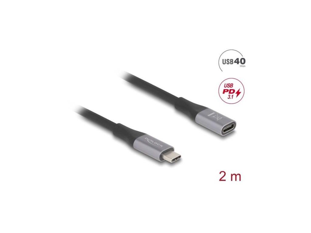 Delock Prodlužovací kabel USB 40 Gbps USB Type-C™ zástrčky na zásuvku PD 3.1 240 W 2 m šedá kovová 81202 DeLock