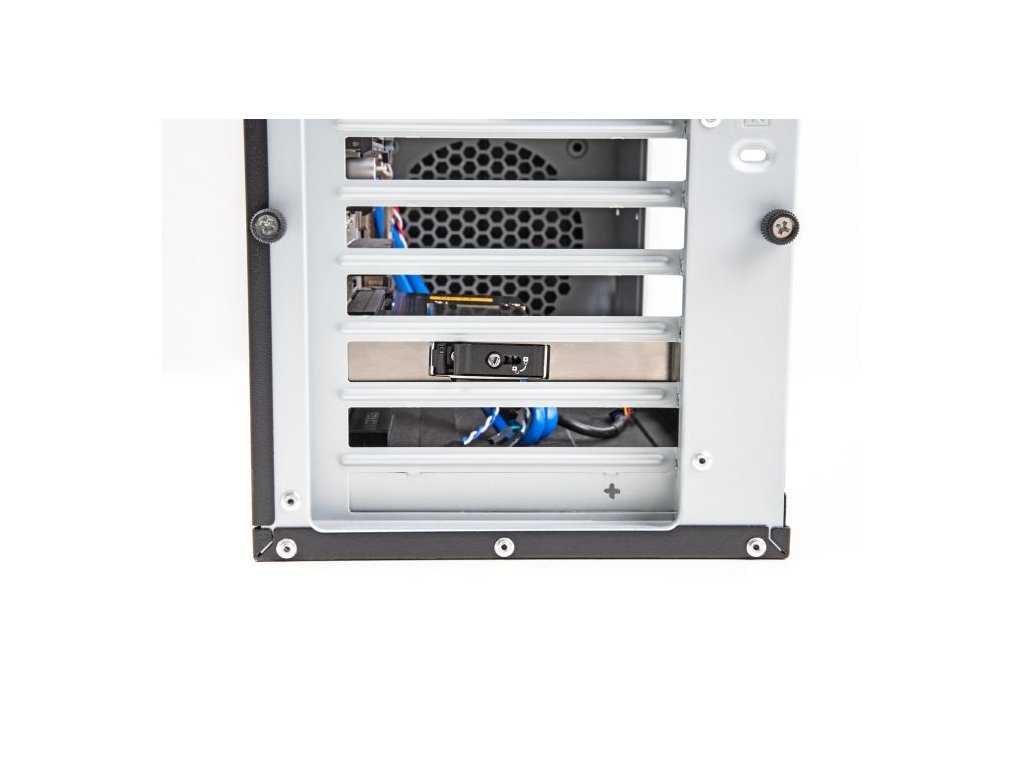 Výmenný rámeček je vybaven zámkem, aby se zabránilo neoprávněnému přístupu. Kovový stabilní nosič má nahoře a vespod pružiny, které omezují vibrace.