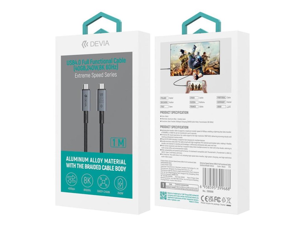 Devia kábel USB 4.0 Extreme Speed Series 240W 8K 60Hz Cable 1m - Black 6938595399688