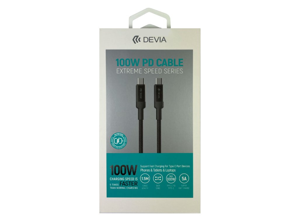 Devia kábel USB-C Extreme speed 100W PD Fast Cable 1.5m - Black 6938595354212