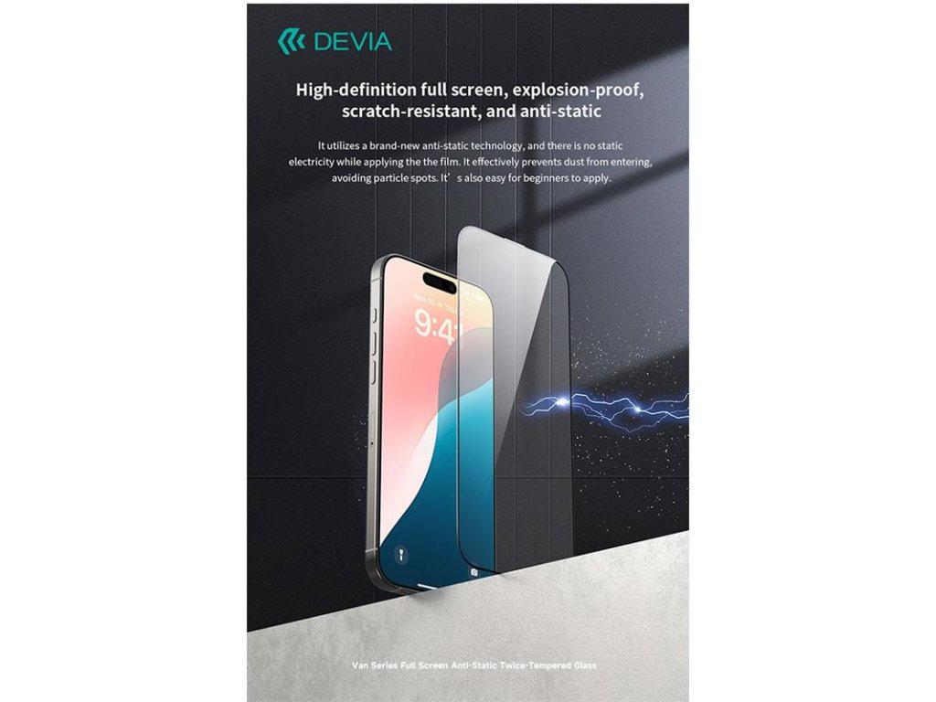 Devia ochranné sklo Van Series Anti-Static pre iPhone 16/15 - Black Frame 6942297115521