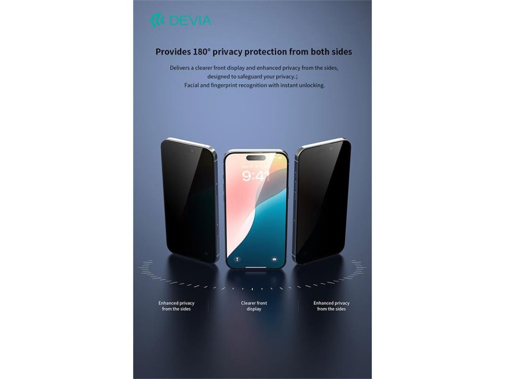 Devia ochranné sklo Van Series Privacy pre iPhone 16/15 - Black Frame 6942297115569