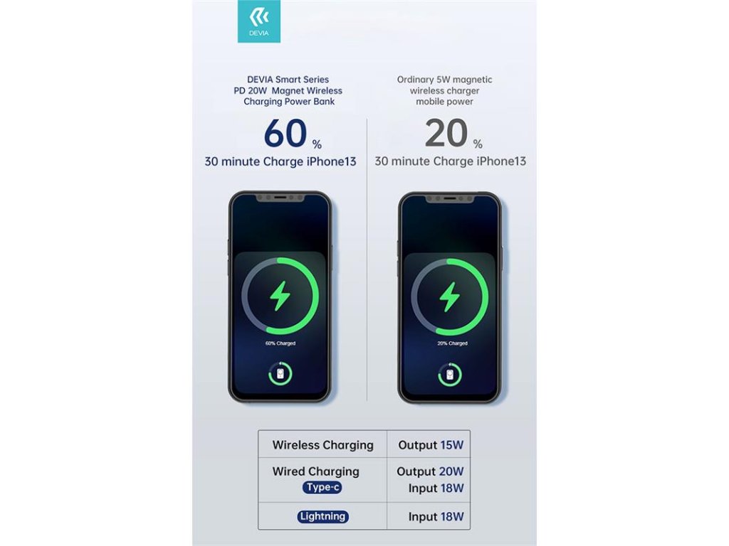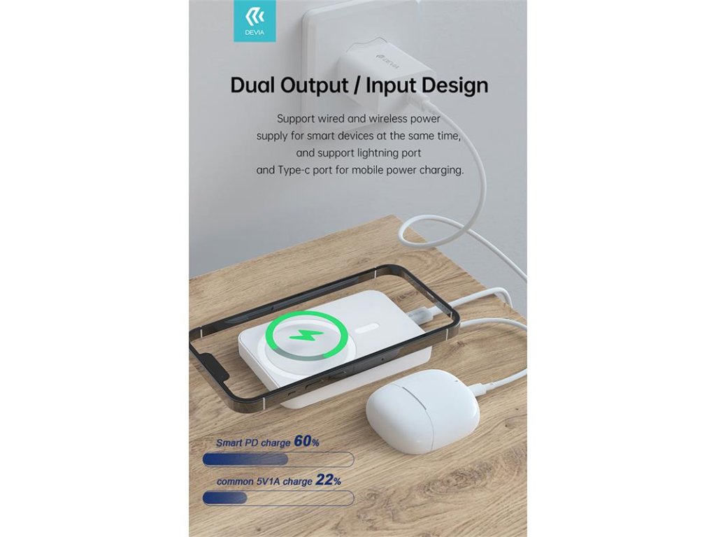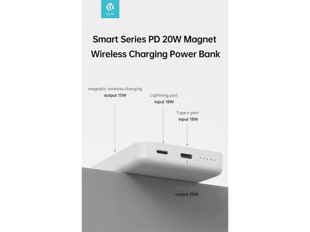 Devia powerbank Smart Series Magnetic Wireless 5000 mAh PD 20W - White 6938595362606