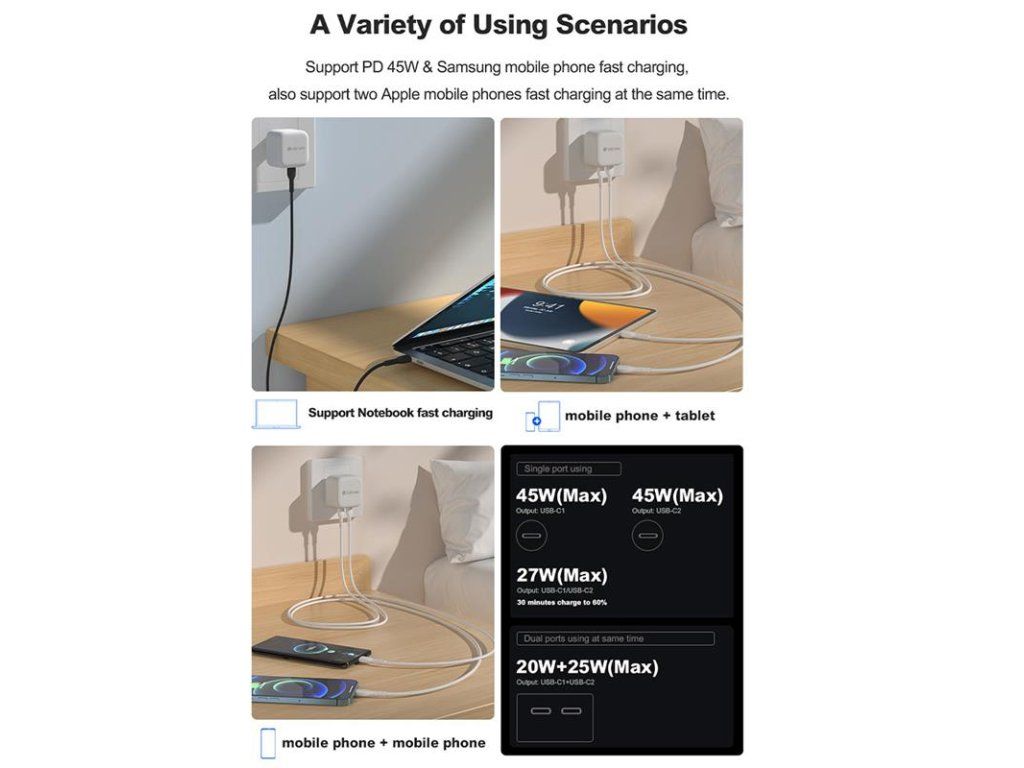 - USB-C1 port poskytuje 20W a USB-C2 25W