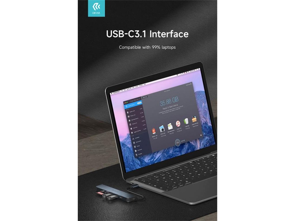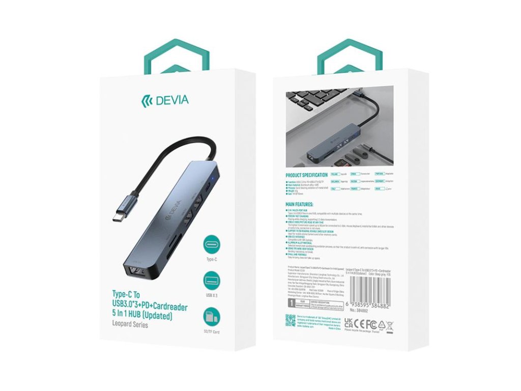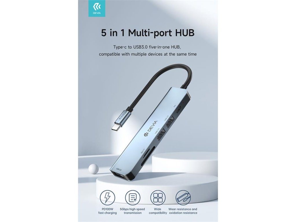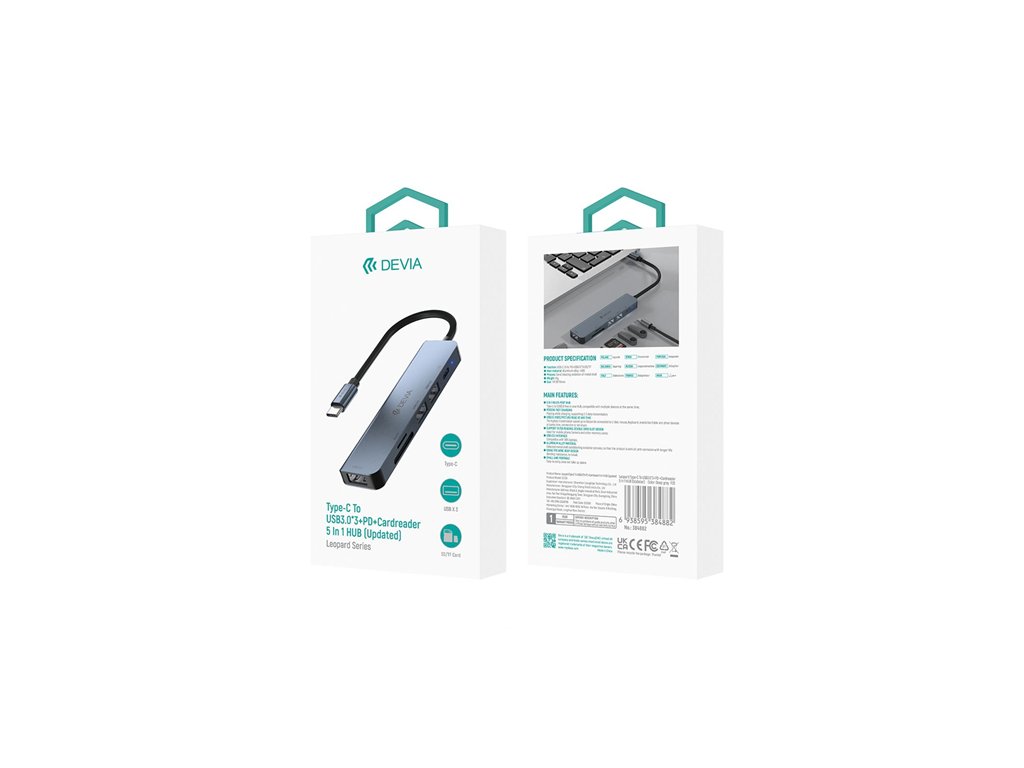 Devia USB-C Hub Leopard Series 5-in-1 EC135 - Deep Gray 6938595384882
