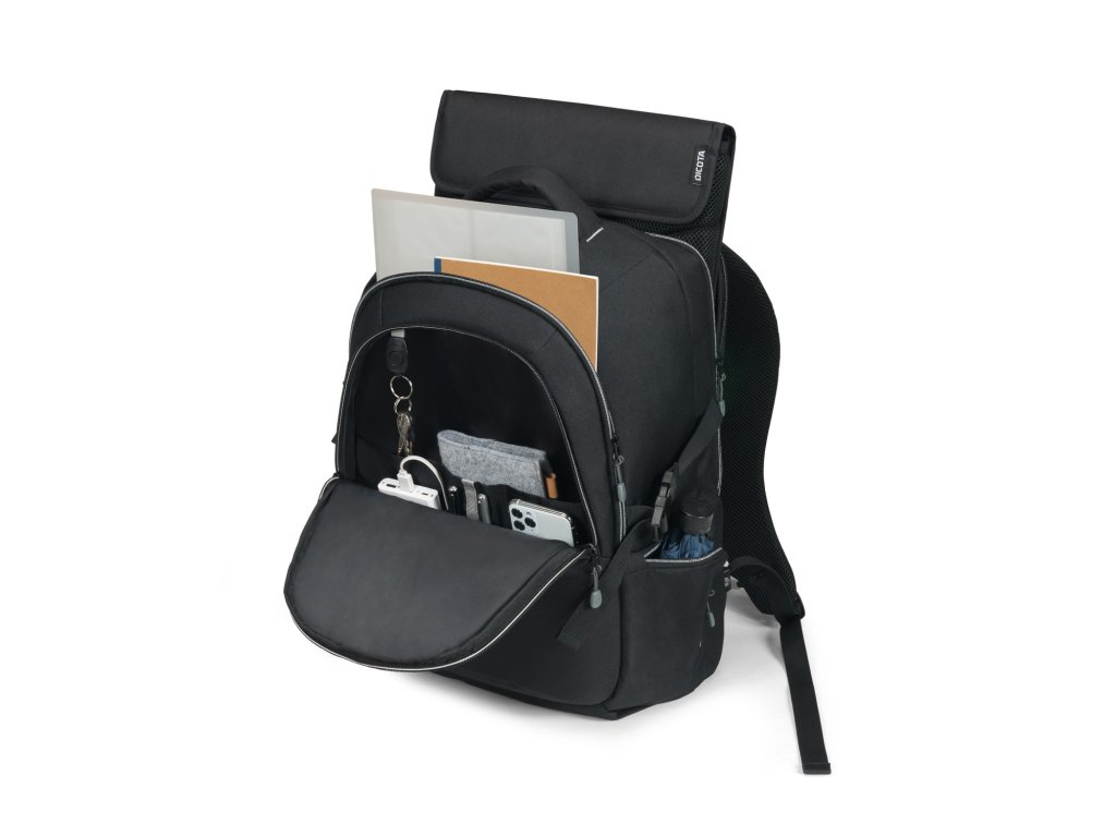 DICOTA Laptop Backpack Eco 14-15.6'' Lehký. Odnímatelné pouzdro na notebook. Integrovaný kryt proti dešti. Tři skvělé důvody, proč si pořídit batoh ECO. *Vyrobeno ze 17 recyklovaných PET lahví pro ekologicky smýšlející profesionály. *Pohodlné ramenní popruhy s nastavitelnou délkou *Ergonomické polstrování zad z prodyšného materiálu *Odnímatelné pouzdro na notebook s ochranou z pěny s vysokou hustotou (HDF) *Integrovaný kryt proti dešti *Pracovní místa pro příslušenství v přední kapse s řetízkem na klíče *Prostorově úsporné boční kapsy na deštník nebo láhev s vodou *Vodoodpudivý materiál pro pohodlné cestování za každého počasí Objem: 25 litrů Materiál: 600D recycled PET Kompatibilita: pro NTB 14-15,6'' Rozměry: 380 x 440 x 195 mm Hmotnost: 1 kg