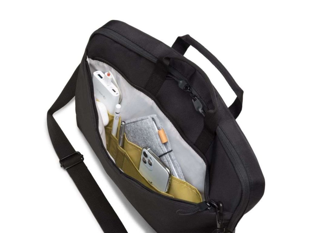 The Eco Slim Case MOTION is a light, slim laptop case. Devices between 12 and 13.3" are well protected in the padded notebook compartment. The slip pocket provides reliable protection for tablets up to 11". The case is comfortable to carry thanks to its padded carrying handle and adjustable shoulder strap. The extra compartment on the back is especially handy for easily storing documents. Your smartphone or other smaller items like cables, pens or chargers can be stored in the convenient front pocket, so they are always on hand. The bag is made of water-repellent material to protect the contents even on rainy days. The Eco Slim Case MOTION is therefore perfect for you if you are always on the go and want to support the recycling of PET bottles with an eco-friendly case.