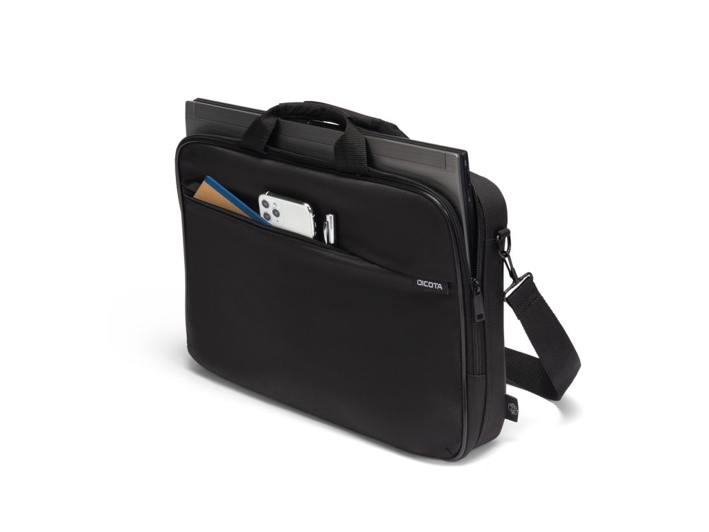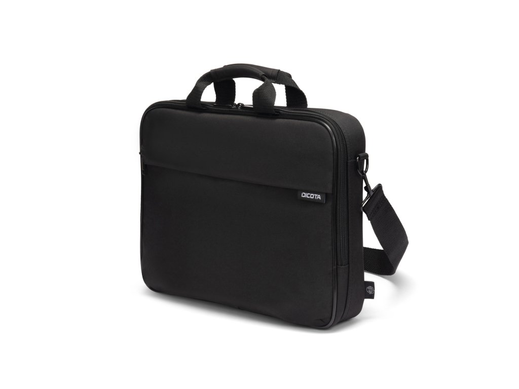 DICOTA Top Traveller ONE 13-14.1'' Praktická taška na notebook s ochranou S tímto modelem ONE toploader dorazí váš notebook bezpečně na místo určení. Ať už jste na cestách pracovně nebo soukromě, vaše elektronické zařízení bude v polstrované kapse dobře chráněno. *Uzamykatelná přihrádka na notebook *Kapsa se zapínacím páskem pro upevnění notebooku *Velkorysý prostor pro dokumenty a osobní věci *Přední kapsa s pracovní plochou pro mobilní příslušenství *Pohodlná rukojeť pro přenášení a odnímatelný ramenní popruh Barva: černá Materiál: 300D recyklovaný polyester PET Max. rozměry zařízení: 350 x 245 x 30 mm Rozměry produktu: 370 x 270 x 55 mm Hmotnost: 0,45 kg