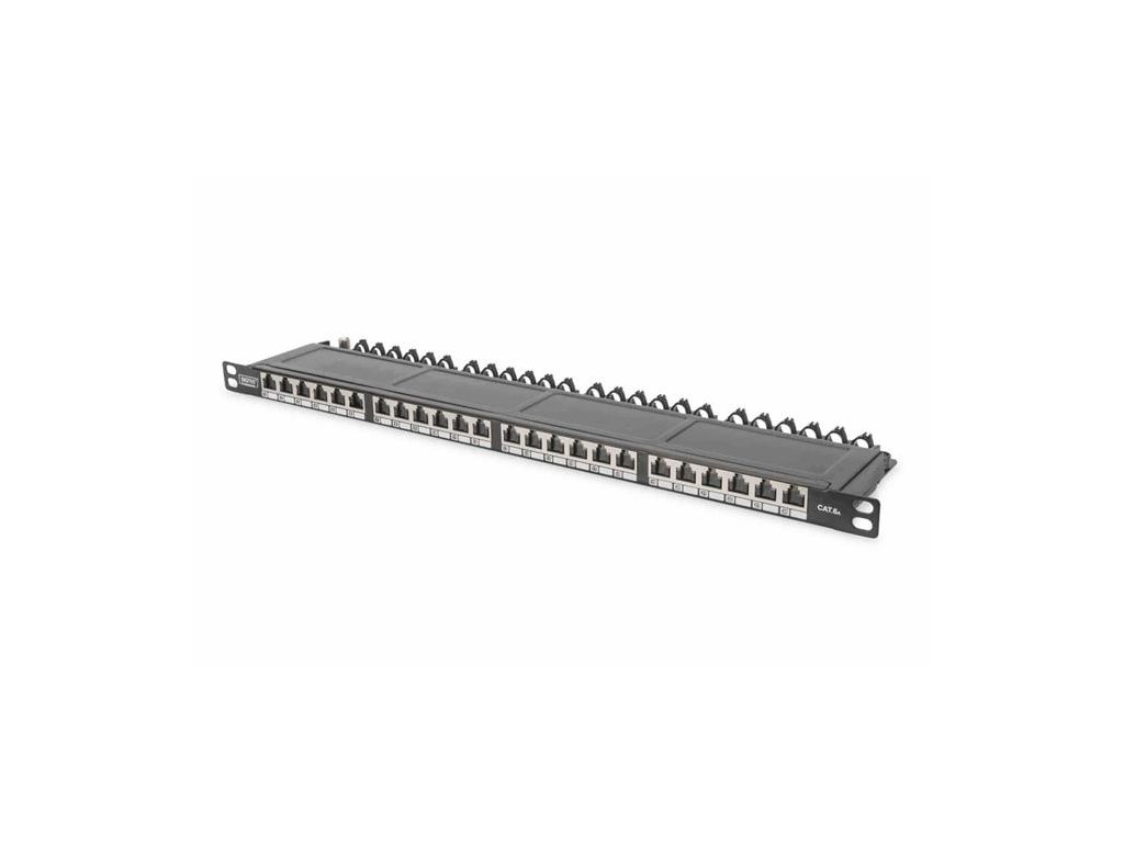 DIGITUS CAT 6A Patchovací panel třídy EA, stíněný, 0,5U 24 portů RJ45, vč. protiprachový kryt, 8P8C, černý DN-91624S-SL-EA Digitus