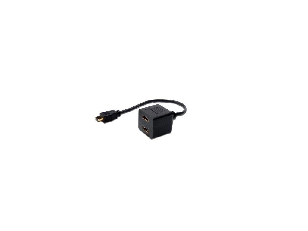 Digitus kabel HDMI Y-rozbočovač, HDMI TypeA - 2x HDMI Typ A, 0,2m, CU, AWG30, stíněný, M / F, UL, pozlacený, černý AK-330400-002-S