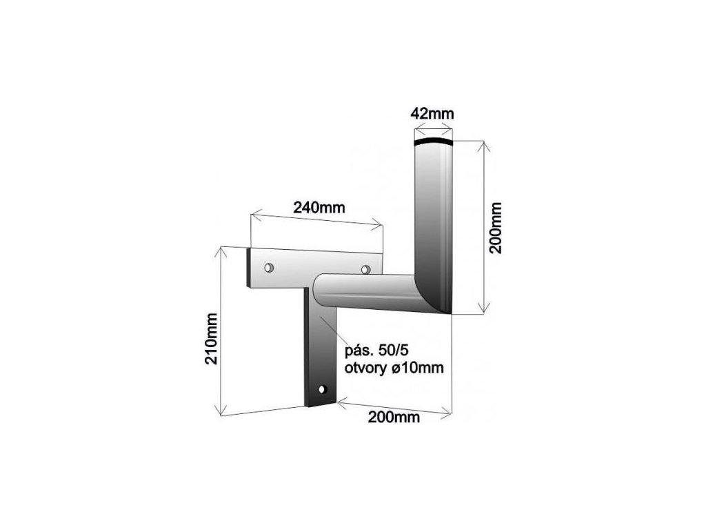 Držák antény na zeď, tvar T, žárový zinek, délka 20cm K20T42Z WFmetal