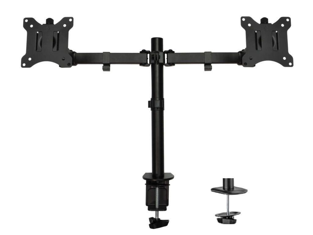 - Kloubový držák na dva monitory - Pro velikosti monitorů 17'' až 32'' - Možnosti náklonu + 45° / - 45°, natočení + 90° / - 90° a rotace 360° - Rozměry pro uchycení VESA 75 x 75 mm a 100 x 100 mm - Upevnění pomocí svorky nebo průchodkou stolu - Nosnost 9 kg na jednu obrazovku - Výškově nastavitelný 45 až 395 mm - Systém pro uspořádání kabelů součástí držáku - Instalační materiál součástí balení - Rozměr 460 x 395 mm