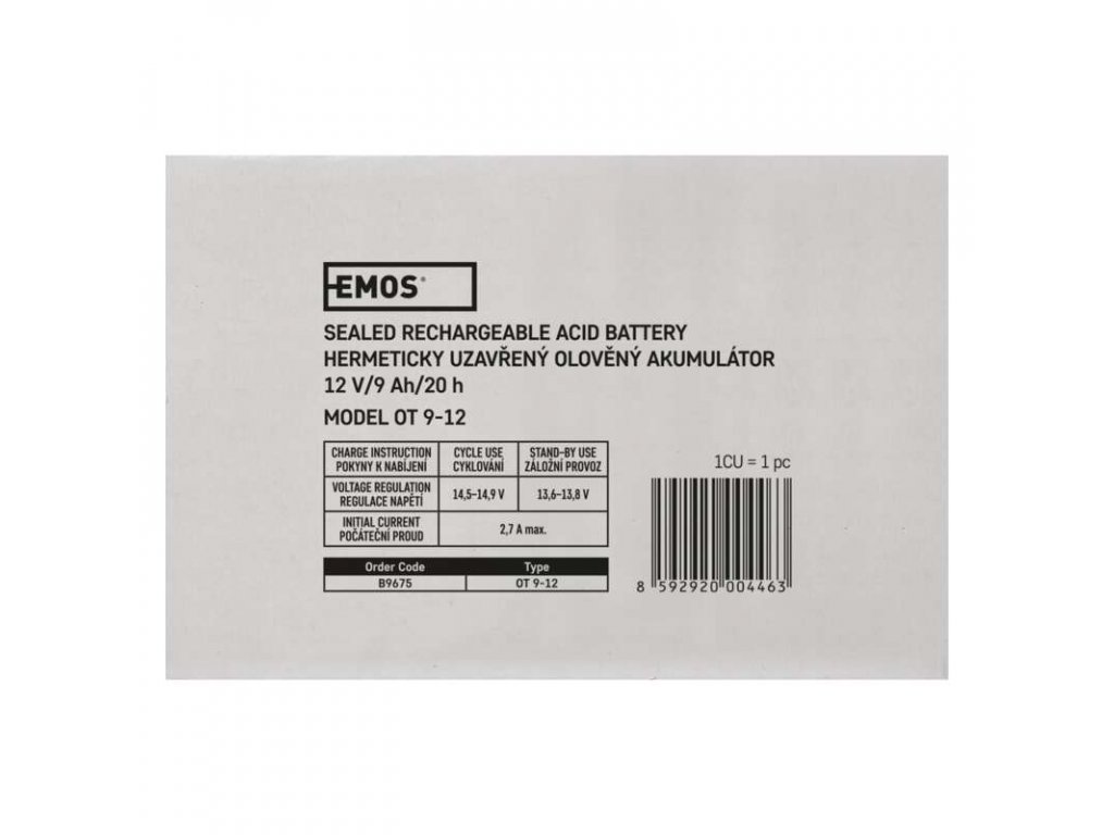 Akumulátor EMOS je vhodný ako náhradná batéria pre záložné zdroje UPS, RBC kity, detské vozidlá a pod. Bezúdržbový, ventilom riadený olovený akumulátor v prevedení AGM umožňuje použitie v ľubovoľnej polohe.