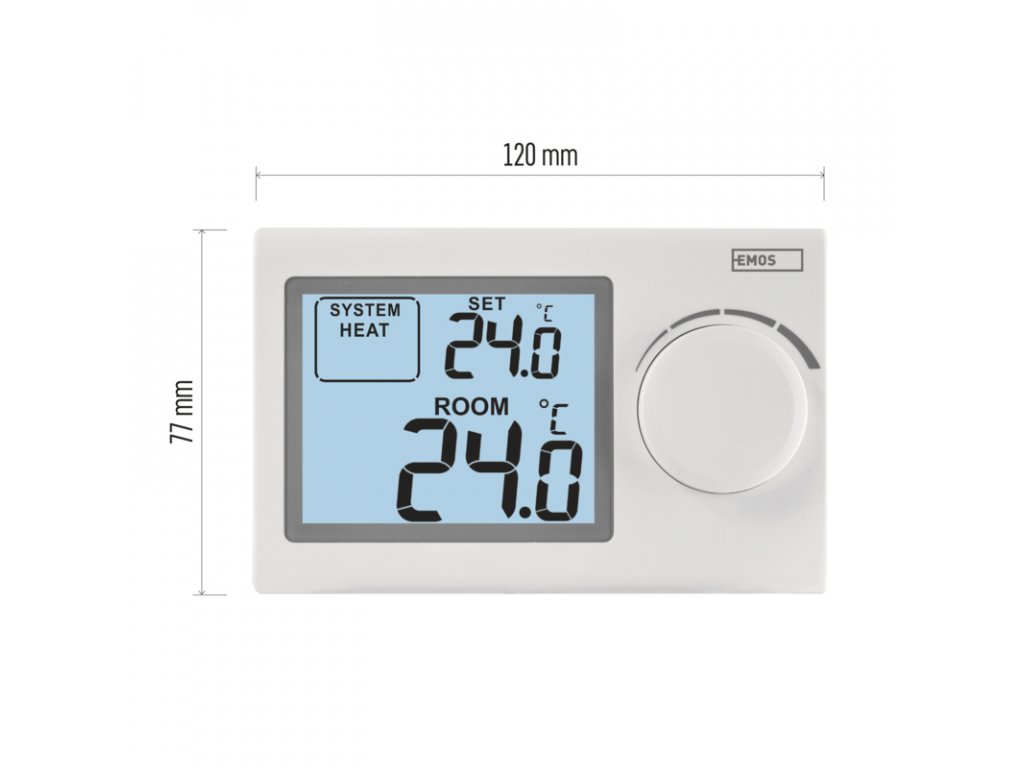 Značka EMOS Objednací číslo P5604 Produktové číslo 2101106000 EAN 8592920064030 typ ovládání manuální pokojový termostat typ termostatu drátový druh regulace vytápěcí a chladící systém nastavení teploty 5 °C až 35 °C, po 0,5 °C typ nastavení teploty manuálně nastavitelný rozptyl teploty ±0,2 °C měření teploty 0 °C až 40 °C, rozlišení 0,1 °C délka kapilárového čidla neuvádí se počet programů uživatelsky nastavitelná teplota funkce ON/OFF ne podsvícený displej ano spínání 230 V AC nebo beznapěťové barva bílá dosah ve volném prostoru neuvádí se ochrana proti zamrznutí ano napájení přijímače neuvádí se funkce prázdniny ne funkce Set-back ne napájení 2× 1,5 V AAA (součástí dodávky) možnost propojení s dalšími detektory neuvádí se napájení brány neuvádí se napájení vysílače neuvádí se pracovní frekvence neuvádí se součást balení neuvádí se spínaná zátěž 8 A odporově, 2 A induktivně kalibrace teploty ano protokol – rozměr brány neuvádí se rozměr přijímače neuvádí se rozměr vysílače neuvádí se rozměr 30 × 120 × 77 mm prodejní obal 1 ks, krabička