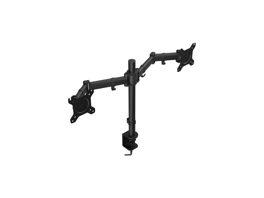 Stolní VESA držák pojme dvě ploché obrazovky o velikosti až 27" a celkové hmotnosti do 16 kg. Univerzální technologie naklápění, otáčení a rotace umožňuje optimální nastavení a současně chrání i krční páteř, díky snadnému nastavení monitoru do úrovně očí. Je kompatibilní se standardy VESA 75 × 75, 100 × 100 mm a vhodný pro stoly o tloušťce do 60 mm.