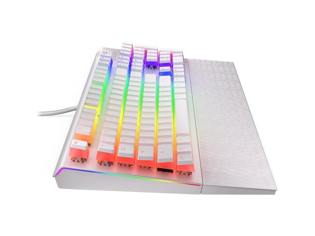 Plnohodnotná mechanická klávesnica pre každého vášnivého hráča. Vďaka spínačom Kailh Red ponúka výbornú odozvu a výdrž cez 50 miliónov stlačení. Konštrukcia z hliníka vykazuje len tú najvyššiu možnú odolnosť a stabilitu. Špičkové pohodlie zaistí odnímateľná opierka dlaní. Klávesy sú RGB podsvietené a ponúkajú možnosť vlastného nastavenia. Klávesy sú navyše tiež plne programovateľné, vďaka tomu je možné klávesnicu individualizovať presne podľa potrieb hráča a hranej hry. Klávesnica disponuje aj otočným ovládačom hlasitosti. Samozrejme nechýbajú ani funkcie Anti-Ghosting a N-Key rollover. Pripojenie je realizované cez odnímateľný USB kábel.
