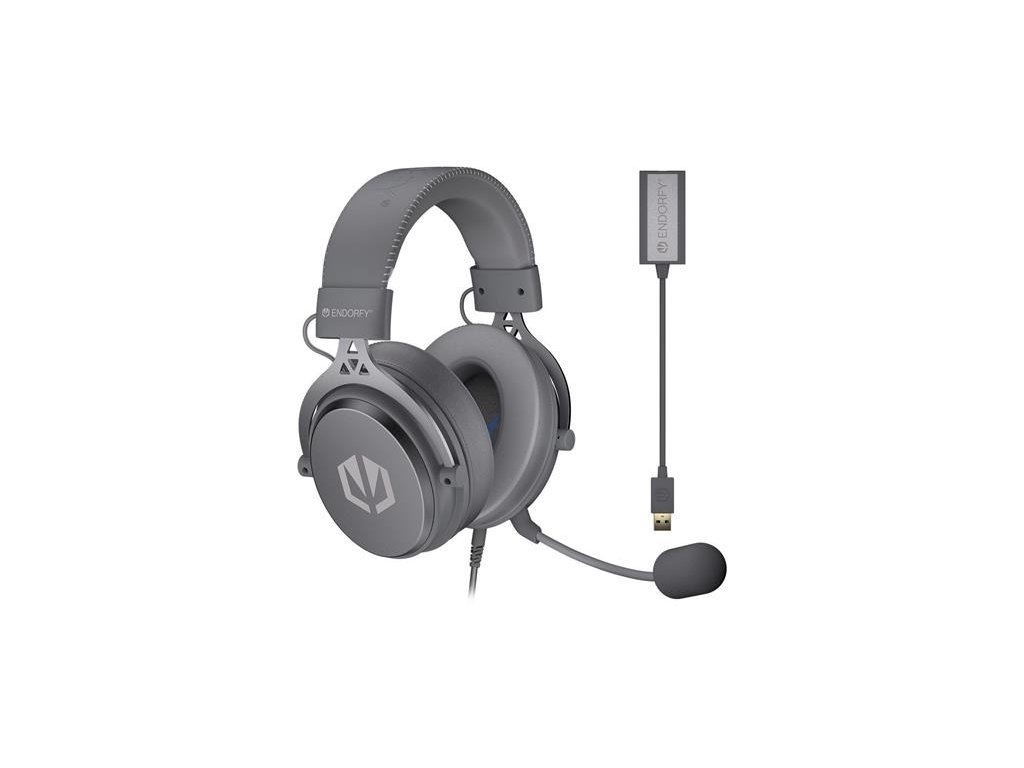 Endorfy VIRO Plus USB Alt Grey Headset,herní,náhlavní,drátový,odnímatelný mik.,53mm měniče,3,5mm jack + externí zvk.karta/šedý