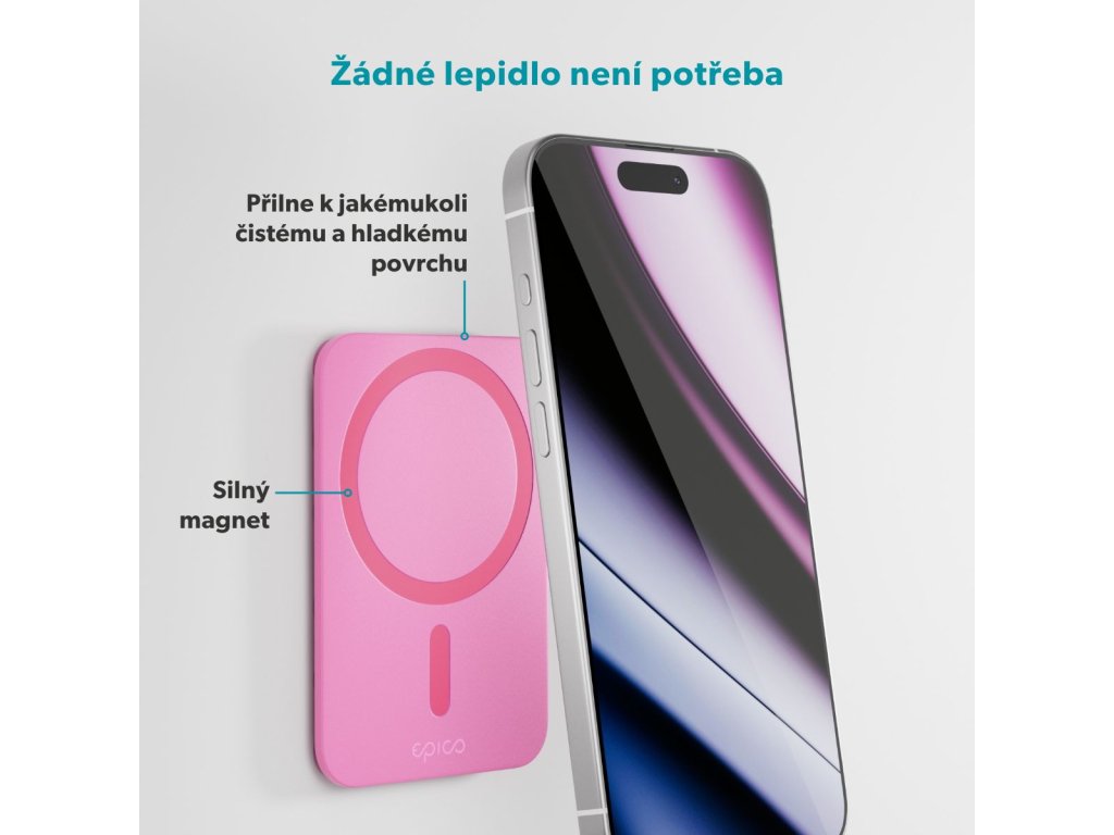 Přísavný magnetický držák pro každou situaci Epico Mag+ Suction Holder je praktický držák, který spojuje silný magnet na jedné straně s přísavkami na straně druhé. Bez problémů se přichytí ke všem iPhonům s MagSafe nebo dalším kompatibilním smartphonům. Při sledování filmu v letadle, natáčení videa nebo videohovoru drží telefon spolehlivě na svém místě. Bez lepidla, bez starostí Díky 24 přísavkám držák pevně přilne k jakémukoli hladkému a čistému povrchu – bez potřeby lepidla. Po použití ho jednoduše odcvaknete, aniž by na povrchu zůstaly viditelné stopy. Už žádné zbytky lepidla ani složité sundávání.