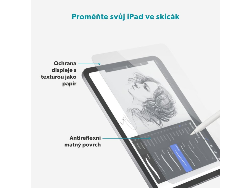 Proměňte svůj iPad ve skicák Ochranné sklo Epico Paper Texture Glass poskytuje přirozený zážitek z kreslení i psaní díky povrchu, který věrně napodobuje strukturu papíru. Balení obsahuje papírový aplikátor s předem nainstalovaným sklem. Pro rychlou a snadnou instalaci stačí iPad vložit do zásobníku a jednou zatáhnout – aplikátor odstraní veškerý prach a zajistí perfektní nalepení. Matná vrstva pro displej bez odlesků Matná vrstva snižuje odlesky a zlepšuje čitelnost displeje na přímém světle. Díky ultratenkému profilu o tloušťce pouhých 0,35 mm je ochrana na displeji téměř neviditelná, zatímco citlivost dotyku zůstává naprosto zachována. Sklo s tvrdostí 9H a vysokým obsahem hliníku spolehlivě chrání displej před poškrábáním i běžným opotřebením.