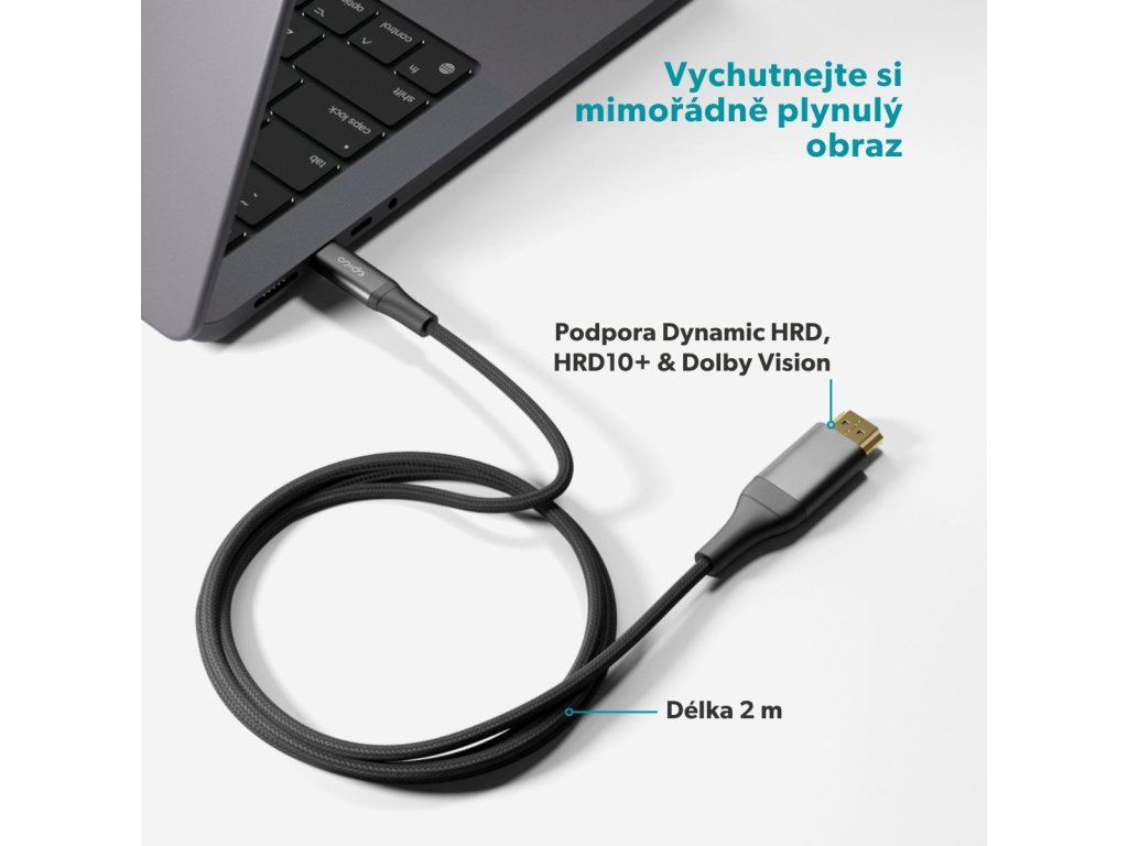 Získejte z každého připojení maximum S kabelem Epico UltraLink EC65 jednoduše propojíte své USB-C zařízení s displejem s HDMI – ideální pro streamování, prezentace nebo hraní her na velké obrazovce. Kabel nabízí přenos obrazu v nejvyšší kvalitě až 8K při 60 Hz, takže ať už sledujete filmy nebo pracujete s obsahem ve vysokém rozlišení, snadno si s tím poradí. Při rozlišení 4K dosahuje obnovovací frekvence až 120 Hz, což se mimořádně hodí pro maximálně plynulý obraz. Šířka pásma 48 Gb/s zaručuje ultra-rychlý přenos zobrazení bez zpoždění či výpadků – skvělá volba pro maximální výkon bez kompromisů. Dokonalý obraz a čistý zvuk V kombinaci se standardem HDMI 2.1 a podporou technologií Dynamic HDR, Dolby Vision a HDR10+ si vychutnáte dokonale vyvážené barvy i kontrast – každá scéna tak bude vypadat živě a přirozeně. O perfektní zvuk se pak postará kompatibilita s Dolby Atmos, DTS:X a eARC, které vás vtáhnou do děje s kvalitou a hloubkou jako v kině. Prémiové materiály – hliníkové konektory a opletený povrch – zajišťují dlouhou životnost, odolnost a moderní vzhled. Součástí je také praktické poutko na suchý zip pro úhledné smotání a snadné přenášení při cestování. Délka 2 m navíc zajistí velkorysý dosah pro pohodlné použití.