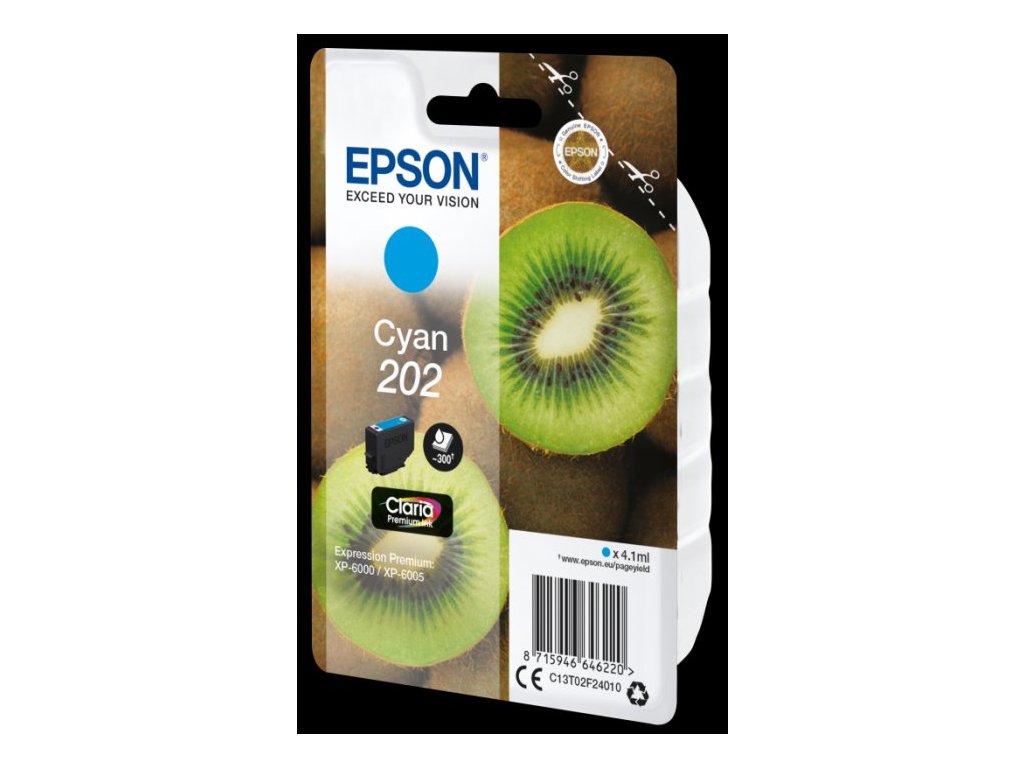 EPSON ink Cyan 202 Premium - singlepack, 4,1ml, 300s, standard C13T02F24010 Epson