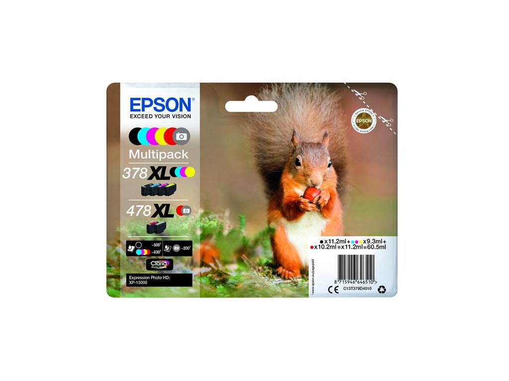 Consumables: Ink Cartridges, Claria™ Photo HD Ink, 378XL+478XL, Squirrel Multipack, 1 x 11.2 ml Black, 1 x 9.3 ml Cyan, 1 x 9.3 ml Yellow, 1 x 9.3 ml Magenta, 1 x 10.2 ml Red, 1 x 11.2 ml Grey