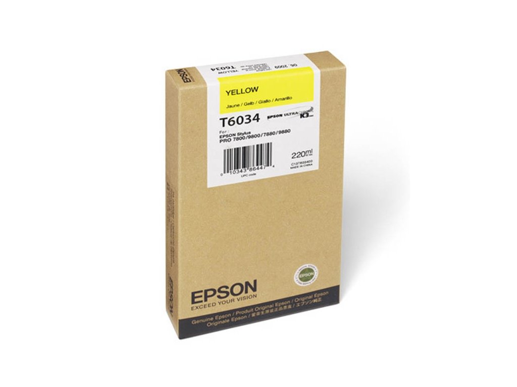 Inkousty Epson byly vyvinuty tak, aby fungovaly v harmonii s tiskárnami Epson. Výsledkem je zřetelný text odolný vůči rozmazání, který vydrží po celé generace. Barva: Yellow Výtěžnost: 220 ml Kompatibilní zařízení: Epson Stylus Pro 7800 Epson Stylus Pro 7880 Epson Stylus Pro 9800 Epson Stylus Pro 9880