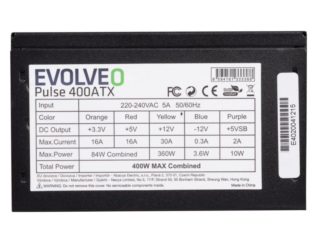 EVOLVEO Pulse 400ATX, zdroj, 400W, ATX, tichý, bulk, záruka 3 roky