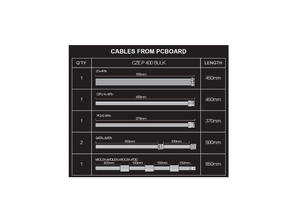 Specifikace • CE certifikace, norma RoHs • tichý 12 cm větrák s regulací otáček • kabeláž v délce 40 cm • 1x napájecí kabel pro MB 20+4pin • 1x napájecí kabel s 3x MOLEX konektorem a 1x fd3 • 1x napájecí kabel cpu 8pin - 4+4 • 2x napájecí kabel s 2x S-ATA konektorem • 1x napájecí kabel VGA PCI-E 6pinDodatočné parametre