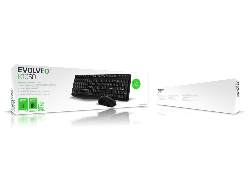 EVOLVEO K1050, tichý set bezdr. klávesnice a myši, US INTL, černá