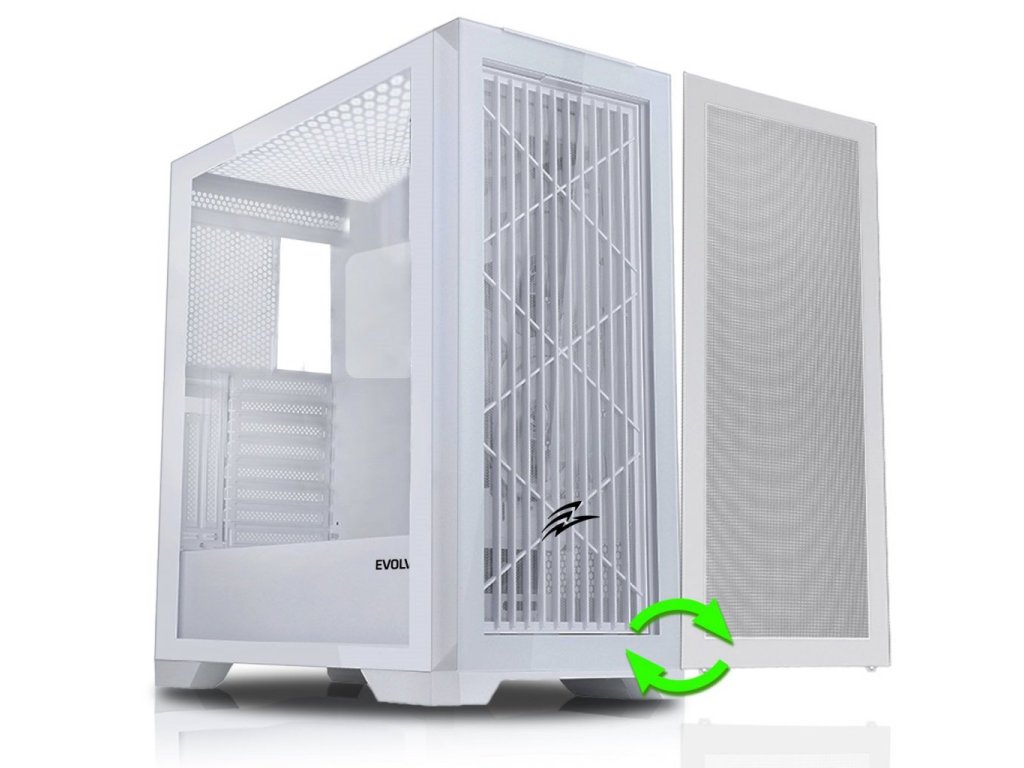 EVOLVEO Ptero Q2W, 2x čelní panel: sklo/mřížka, case ATX, bílá