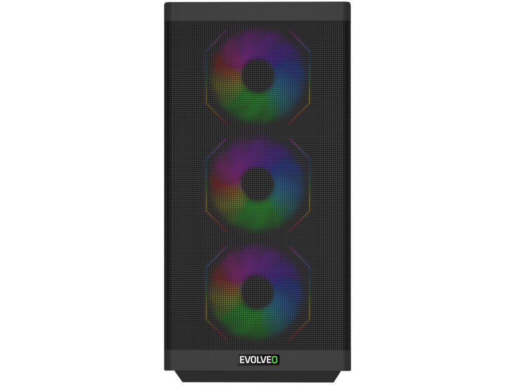 EVOLVEO Scorpio, skříň eATX/ATX, 4x ARGB ventilátor 120mm, boční panel temperované sklo + mřížkovaný přední panel Herní počítačová (e)ATX skříň EVOLVEO Scorpio-BK-4